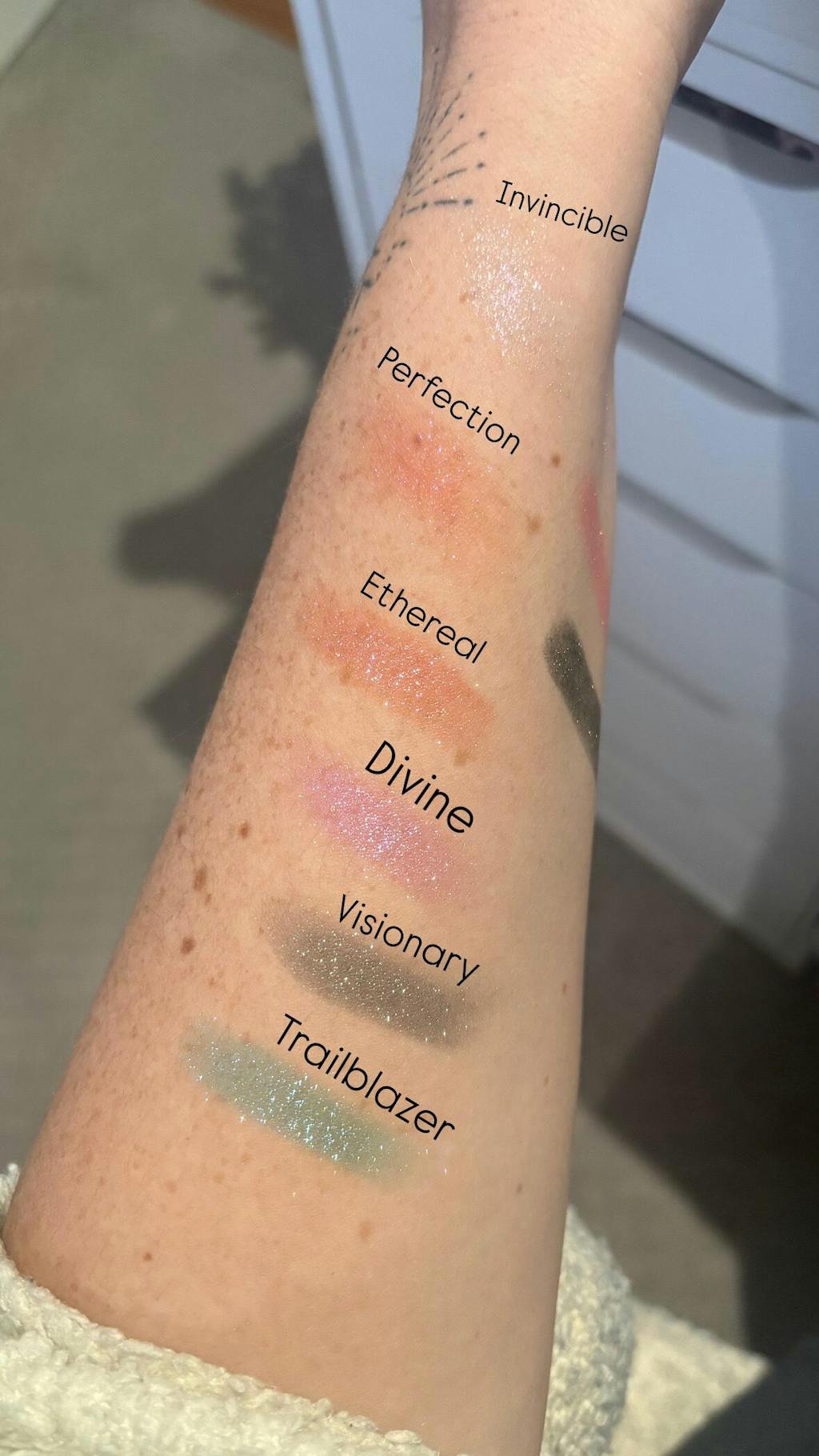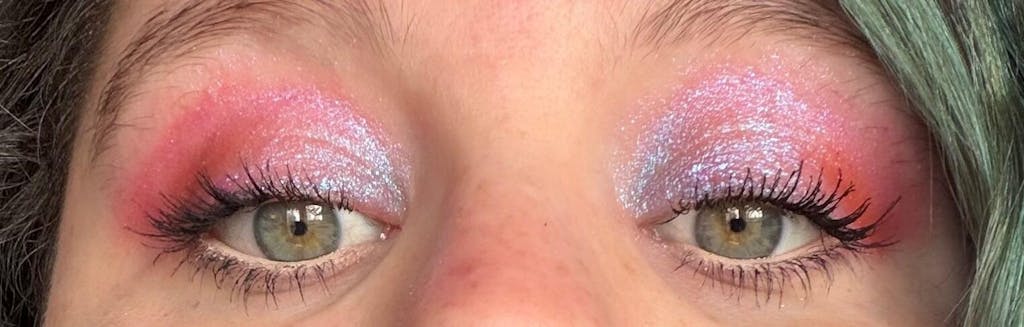 Ethereal is a unicorn shade, and it looks different on everyone. Ethereal is a multichrome shadow with blue glitter and a base that contains pink, purple, nude and coral.
